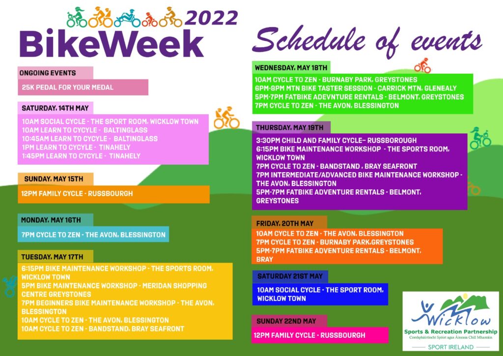 Wicklow Sports Partnership Coordinator, Aisling Hubbard, said: “Bike Week offers a great opportunity for the public to get out and enjoy the beautiful outdoors that Wicklow has to offer. It doesn’t matter if you are an avid cyclist or a complete beginner, we have something for everyone.”