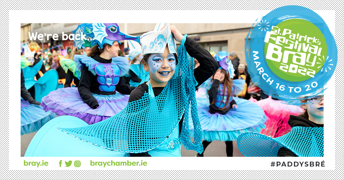 The St. Patrick’s Day Parade in Bray made a spectacular return today. From 2 pm local residents, along with many visitors lined the new parade route to catch a glimpse of the 1,500 strong participants.