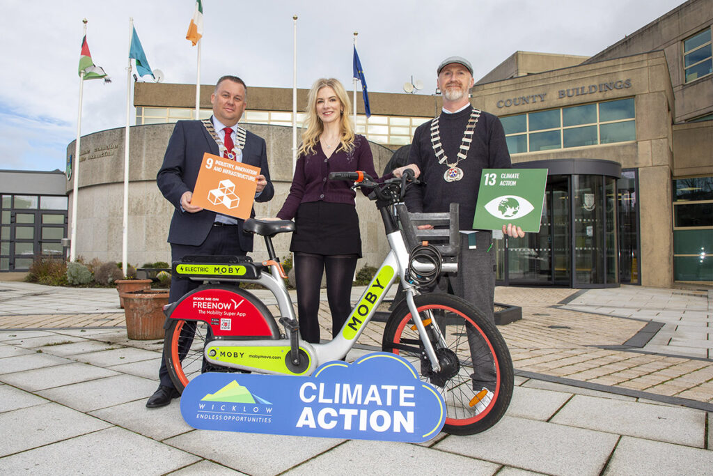 Pictured above are Minister of State at the Department of Transport, Seán Canney, with Cathaoirleach of Wicklow County Council – Melanie Corrigan, Cathaoirleach of Bray MD – Erika Doyle, members of the Active Travel team and Garda Superintendent John Fitzgerald at Bray Dart Station. Cathaoirleach of Bray Municipal District Cllr Dermot O’Brien, Joe Lane (Director of services, Wicklow County Council), Elaine Conlan (Park & Ride Development Office), Emer O’Gorman (CEO, Wicklow County Council), Muireann O’Keeffe (NTA), Cathaoirleach of Wicklow County Council Paul O’Brien and Tim Wills (Operations Director at Wills Brothers Group) at the sod turning event for Fassaroe Park & Ride, Bray. Paul O’Brien (Cathaoirleach of Wicklow County Council), and Cathaoirleach of Climate, Biodiversity, Recreation, Environment, Energy, Marine & Amenity SPC Cllr Erika Doyle and Dermot O’Brien (Cathaoirleach of Bray Municipal District) at the launch the Moby E-Mobility Bike scheme, Council Buildings, Wicklow Town.