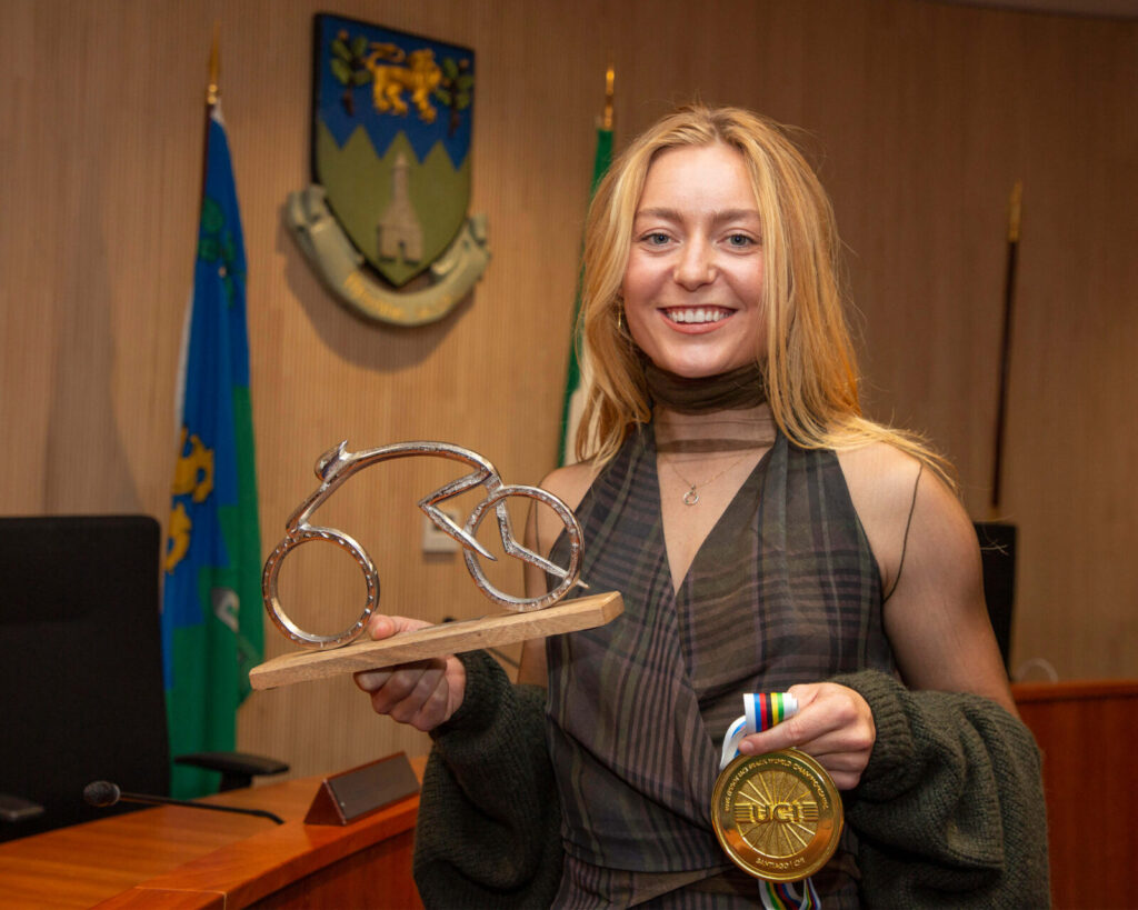 Pictured above are the 2025 Endeavour Award winners, Dylan Kavanagh, the 2025 Bray Person of the Year, and cyclist Lara Gillespie, who secured Ireland’s first-ever female track cycling gold medal at the World Championships.