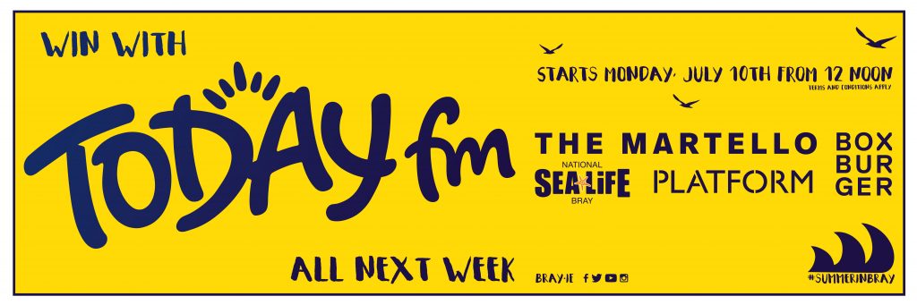 We have teamed up with Today FM this summer to promote our ‘Explore Bray’ tourism campaign and all next week we have some incredible prizes to give away. Just tune into The Al Porter Show with Muireann O’Connell from Monday, July 10th from 12 noon for more information and to take part.